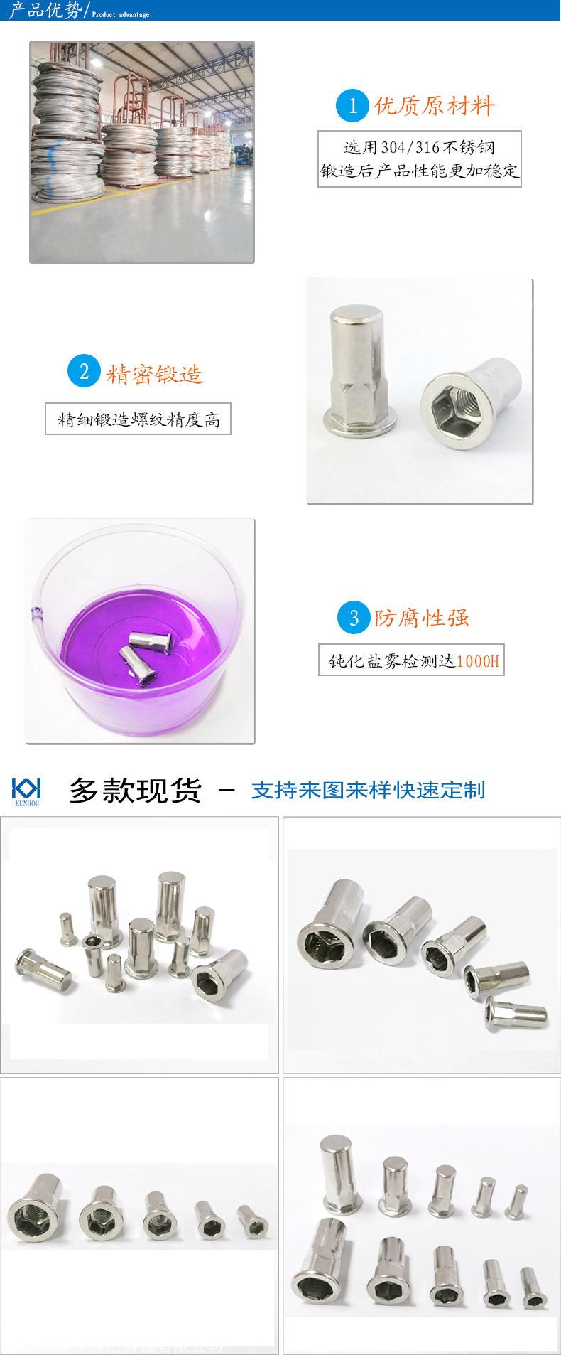 2.不锈钢拉铆螺母,不锈钢防水压铆螺母,不锈钢平头拉铆螺母,不锈钢沉头拉铆螺母,不锈钢六角拉铆螺母,不锈钢小头拉铆螺母