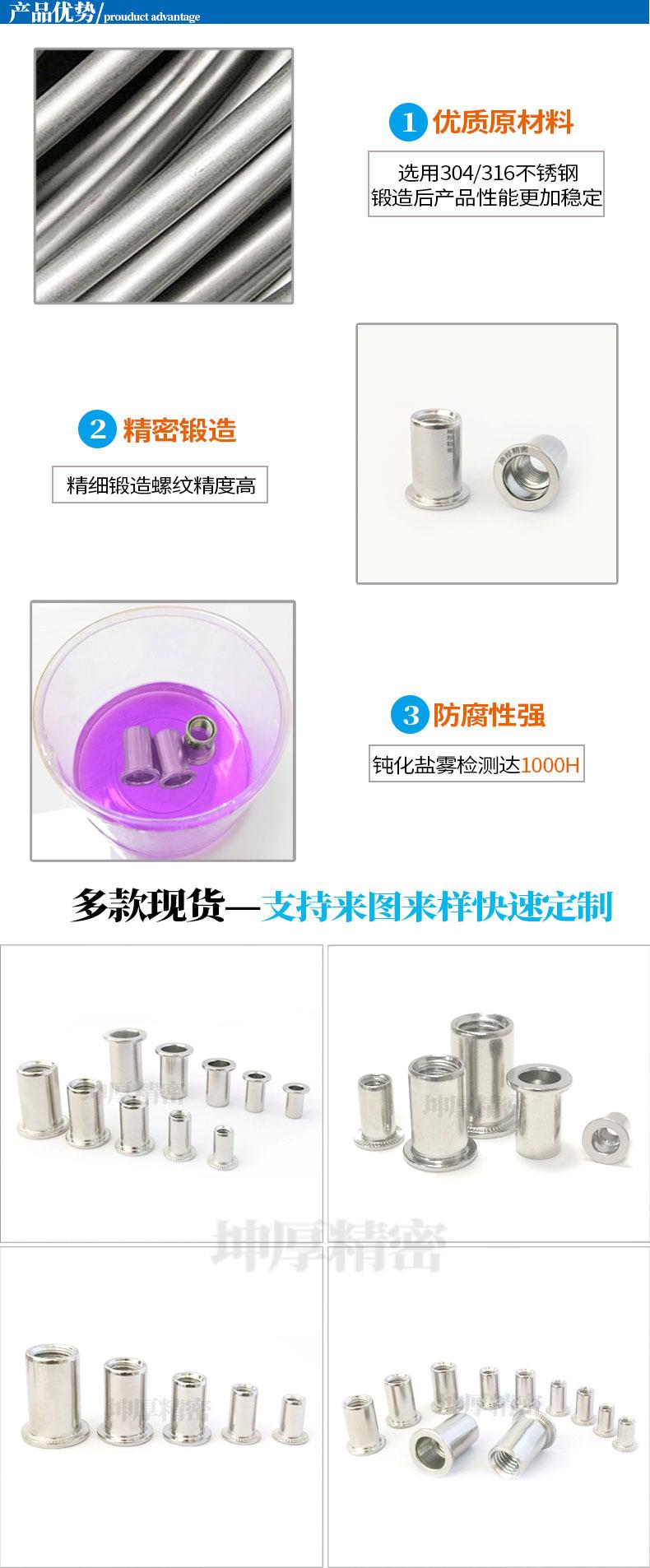 产品详情:东莞市坤厚精密科技有限公司享有出色的生产装置和强劲的技术实力,持有多台冷head机,数十台攻丝机和完整的模具车间;完整的检测装置和检验程序,使产品在生产过程中受到严苛控制。科学标准化的管理,安定的产品质量,持续改良。